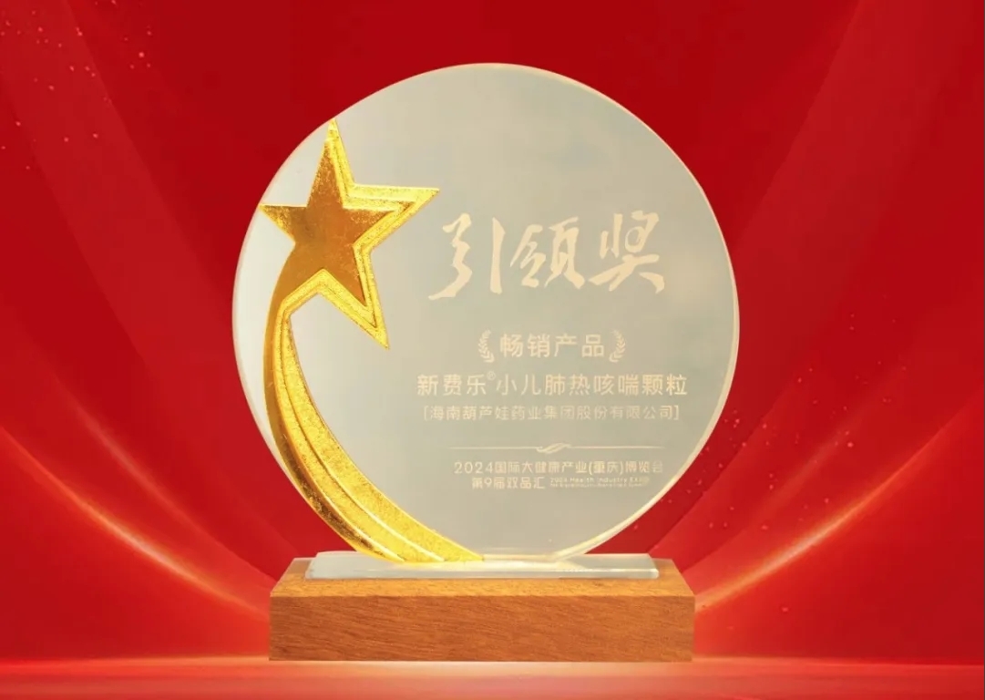 天美娱乐药业新费乐牌小儿肺热咳喘颗粒(4g)荣获“产品引领奖”