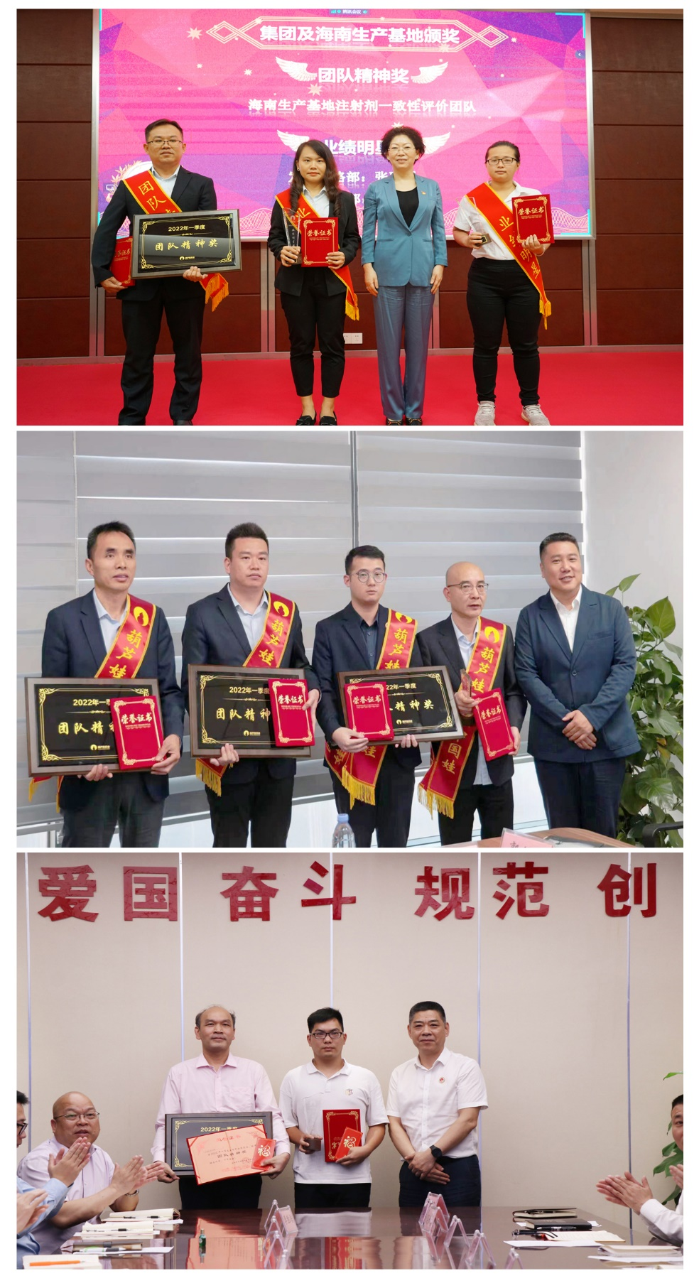为了表彰在2022年一季度“深化变革,赢得开门红”工作中“超额完成计划、超出本职工作或超越组织预期”的先进集体和优秀个人,会议期间还举行了天美娱乐药业集团2022年一季度“开门红”表彰颁奖仪式。营销中心葫芦世家事业部湖南区域主管黄子杰等12人荣获业绩明星奖,葫芦世家事业部等5个集体荣获团队精神奖。