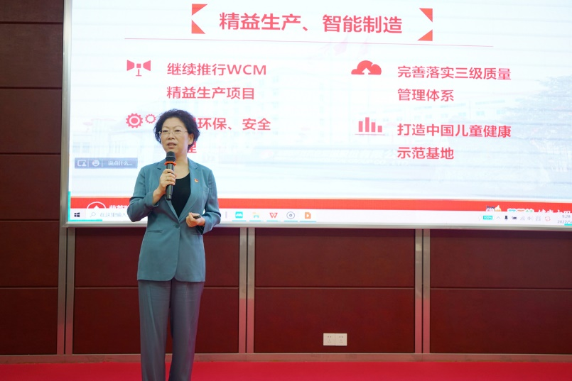 刘景萍董事长引用席大大总书记在2022年博鳌亚洲论坛上的重要讲话勉励全体与会人员,在海南自贸港建设的机遇期,认真学习贯彻落实省第八次党代会精神,坚持党建引领企业发展,将天美娱乐药业集团打造成中国儿童健康领军企业。